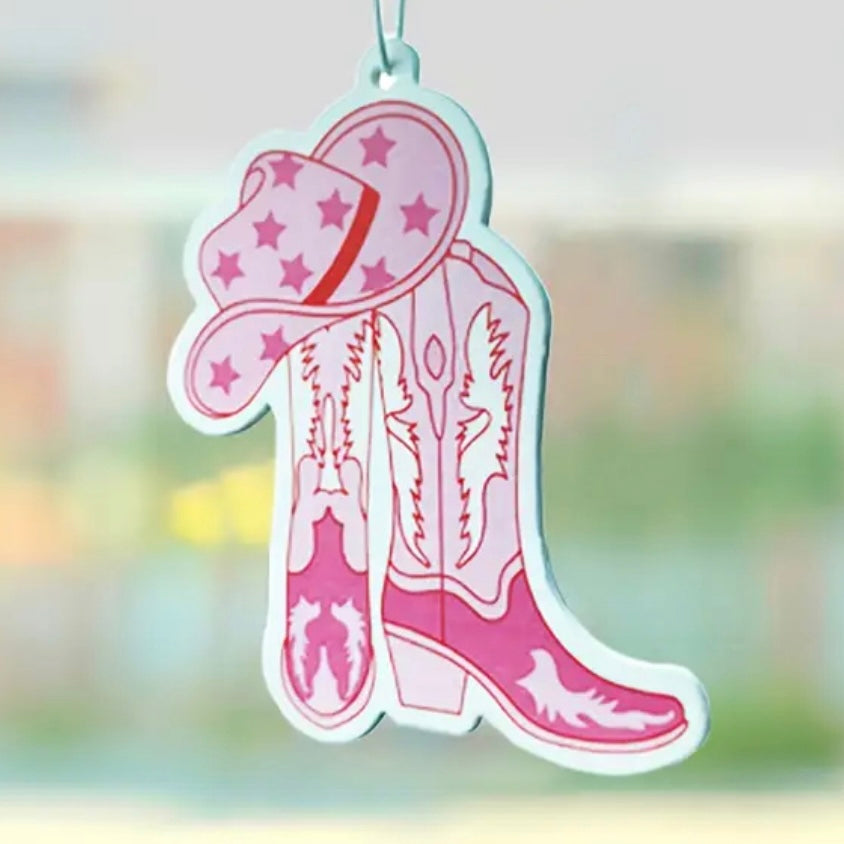 Verleihen Sie Ihrem Auto mit diesem stylischen Lufterfrischer einen Hauch von Cowgirl-Flair! Mit seinem verspielten Design im Western-Stil sorgt dieser Lufterfrischer nicht nur für einen frischen Duft, sondern setzt auch einen coolen Akzent in Ihrem Fahrzeuginnenraum.