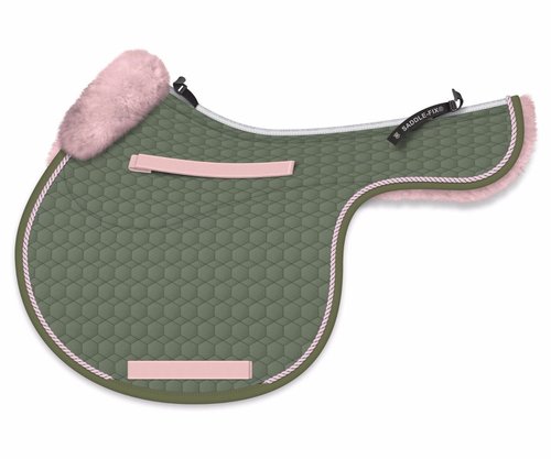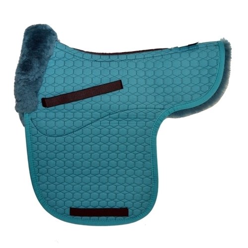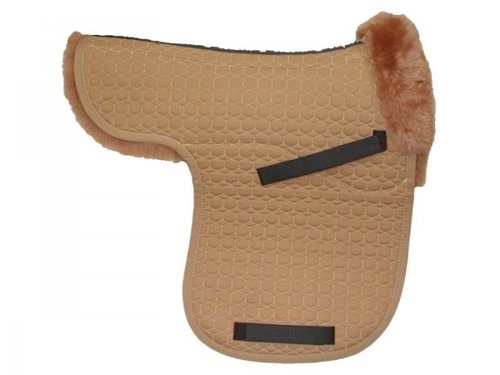Zadelvormig katoenen dekje met lamsbont onder het zadelkussen.