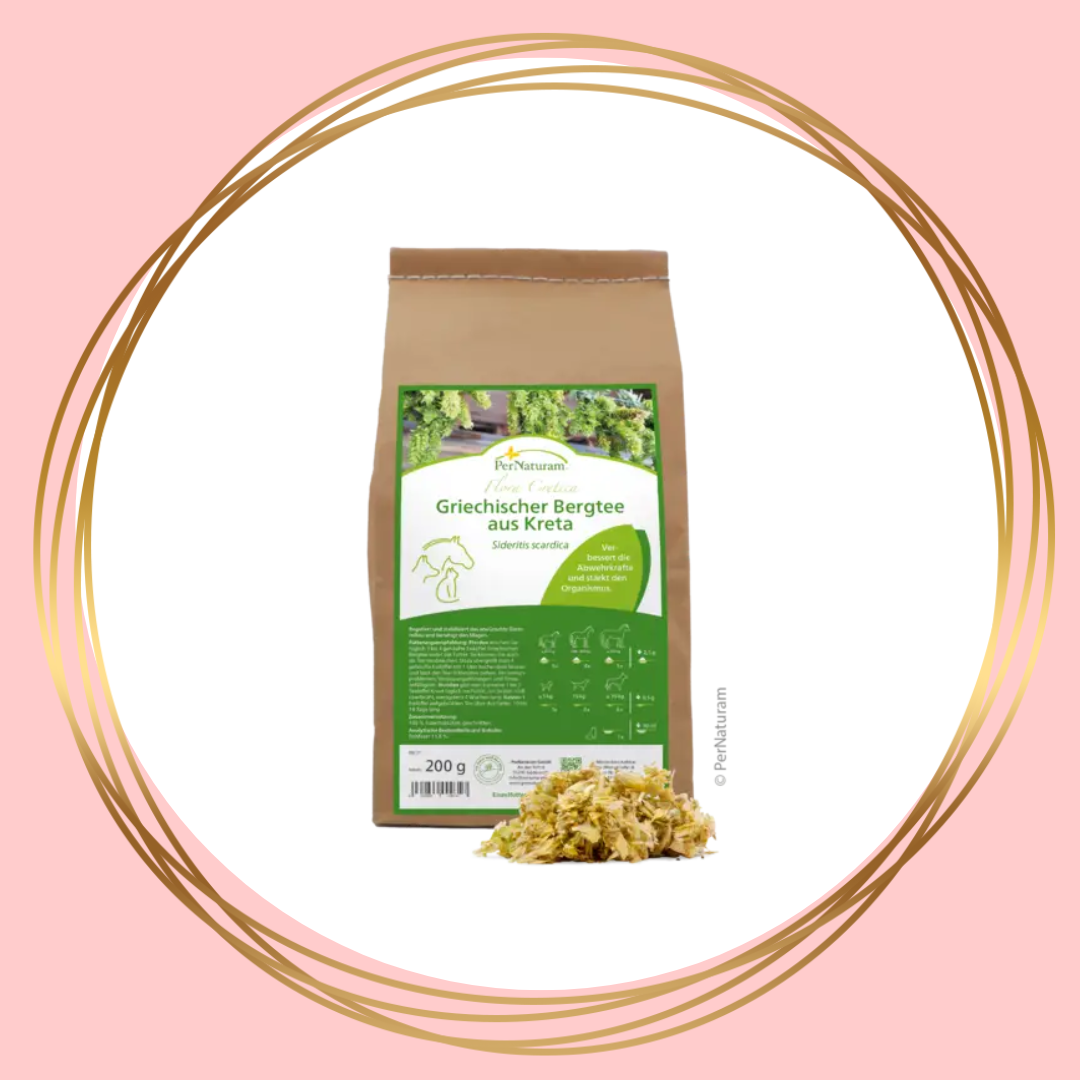 Griekse bergthee (Sideritis scardica) is een krachtige bron van antioxidanten en staat bekend om zijn ontstekingsremmende en spijsverteringsbevorderende werking. Dit kruid helpt het immuunsysteem te versterken en ondersteunt paarden met een gevoelige of nerveuze maag en darmen.