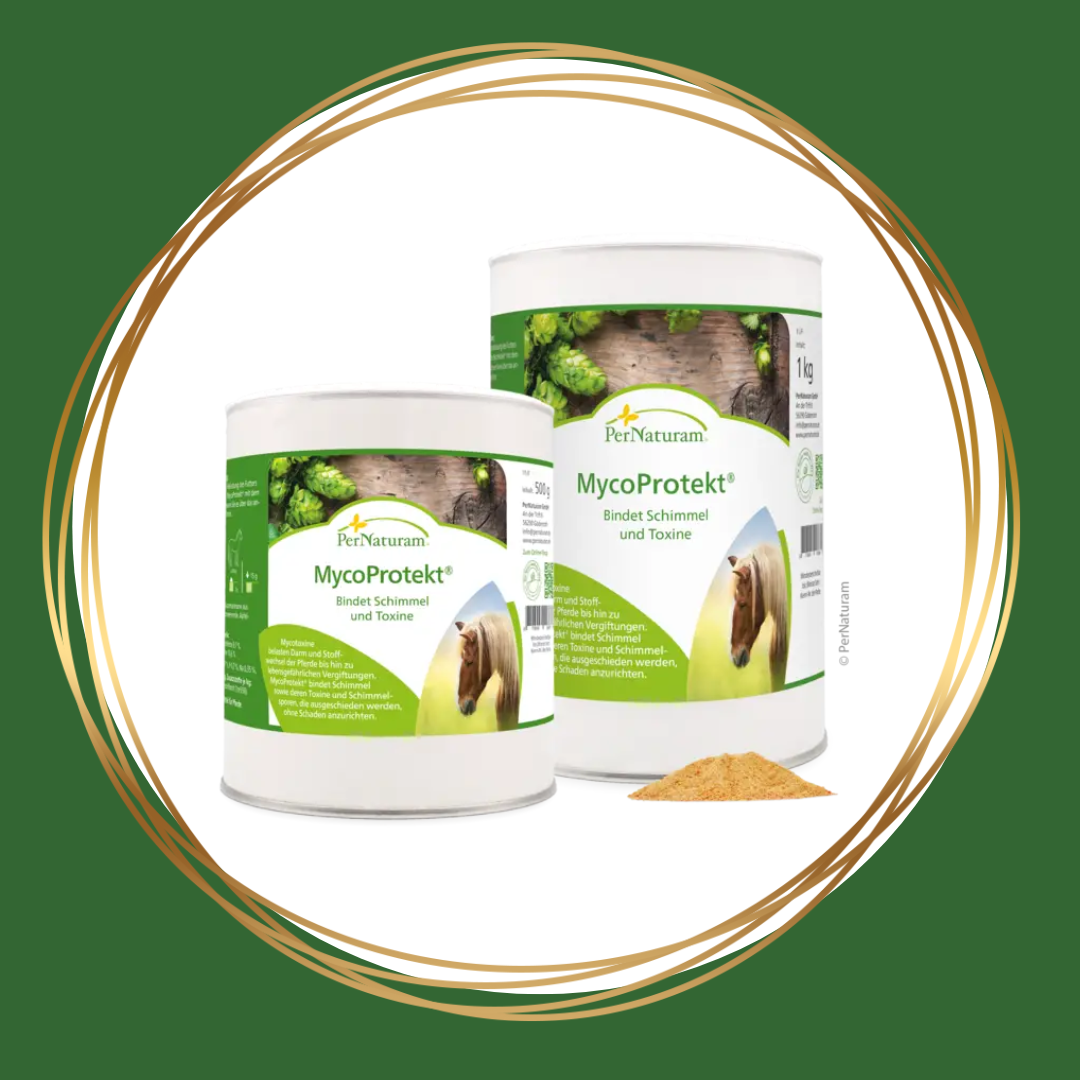 Mycotoxinen — gifstoffen afkomstig van schimmels — kunnen de darmen en stofwisseling van paarden ernstig belasten en zelfs leiden tot levensbedreigende vergiftigingen. MycoProtekt helpt deze risico’s te voorkomen door schimmels, schimmelsporen en hun giftige stoffen in het voer effectief te binden. Hierdoor worden ze veilig via het spijsverteringsstelsel afgevoerd, zonder schade aan te richten.