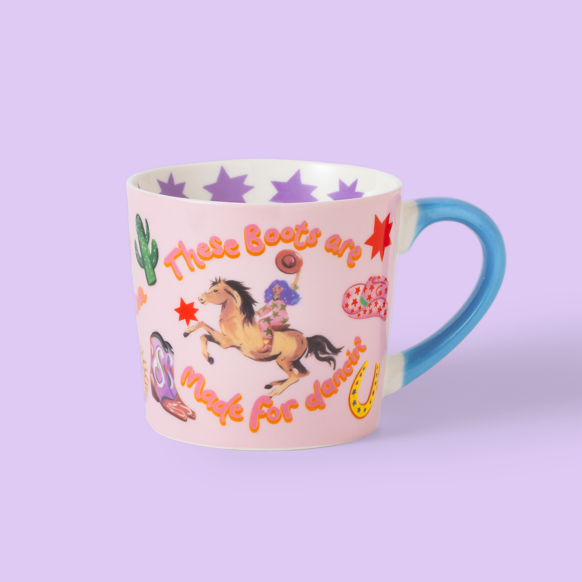 Kick up your heels with our These Boots Are Made For Dancing Mug! Featuring a fearless cowgirl ready for adventure, it's adorned with playful Western icons and starry details. This bold and charming mug is a daily reminder that life is better when you dance through it—boots on, hat held high, and heart full. Perfect for dreamers, doers, and dancers at heart.
