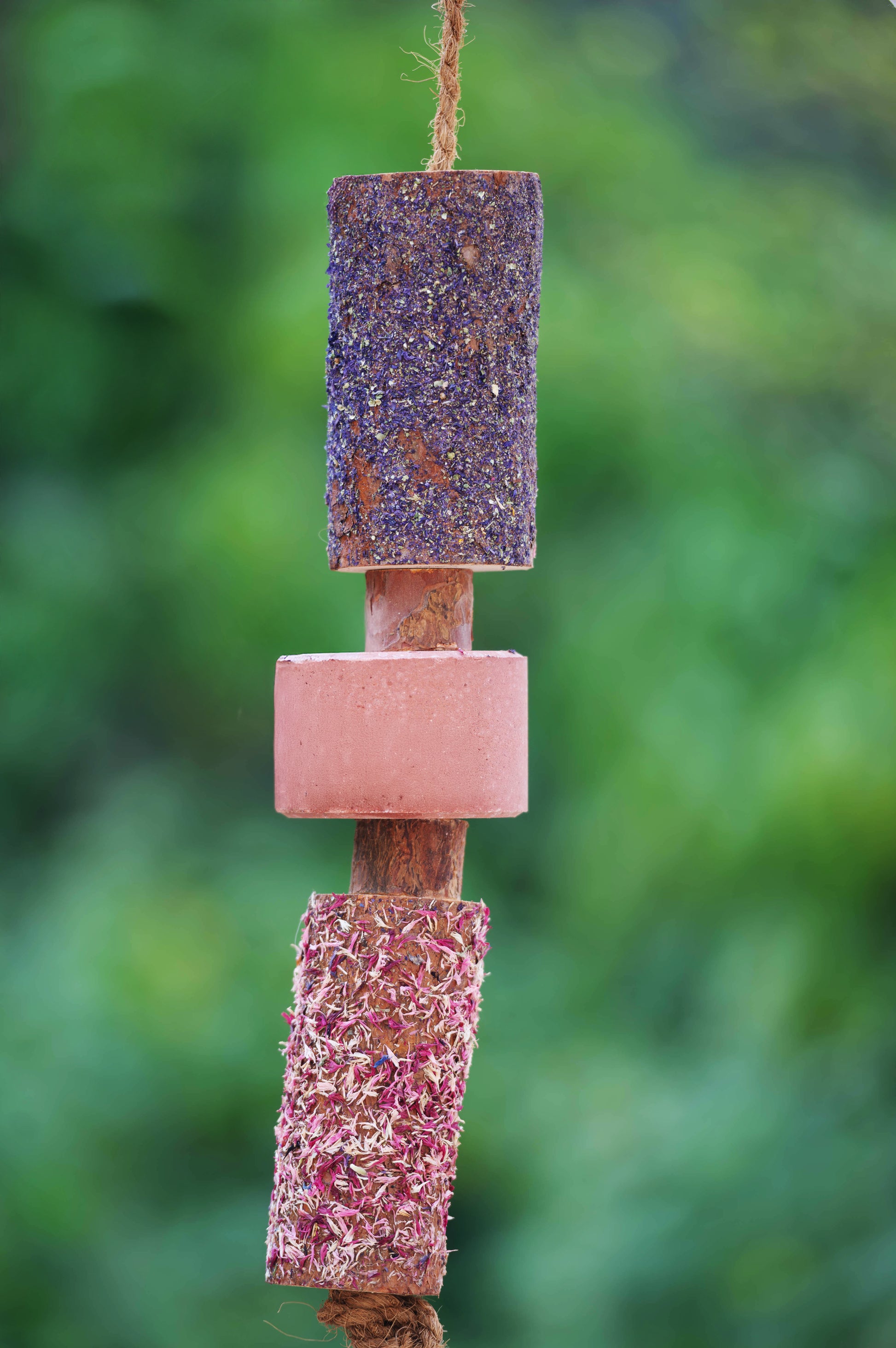 Ingredients: birch sticks, pine sticks, pink cornflower, red cornflower, Malva S. salt lick with rosehips, essential oils (peppermint, golteria, dill, blanket), honey, spring water, coconut fiber cord.