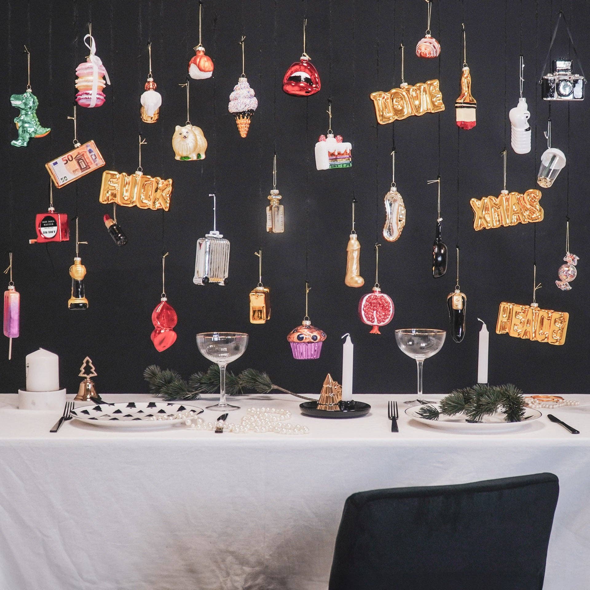 ORIGINELE KERSTVERSIERINGEN - Je kerstmis is niet compleet zonder grappige kerstdecoratie. Deze set van 2 glazen LOVE-ornamenten zal een statement maken in je kerstboom.