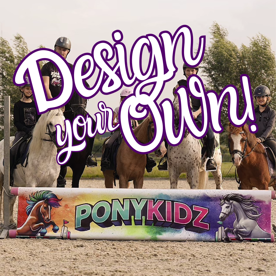 Breng kleur, creativiteit en professionaliteit in je springparcours met de Jumpbanners van Followmyhooves. Onze hinderniszeilen zijn speciaal ontwikkeld om jouw training niet alleen uitdagender, maar ook visueel aantrekkelijker te maken. Kies uit een standaard design of laat jouw eigen ontwerp bedrukken met logo, tekst of zelfs een foto.