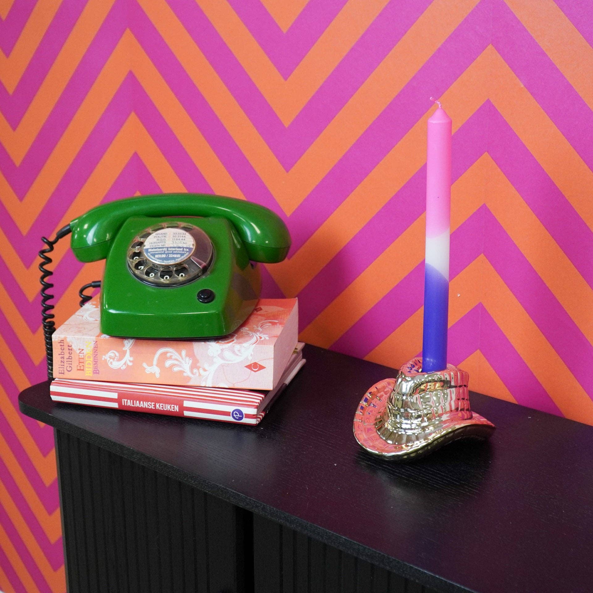 HEY COWBOY! Hello, atmosphere creators! This ceramic cowboy hat candle holder is the ultimate home accessory to give your interior a playful western twist. With its unique design and compact size of 13.5x11x7 cm, it may be small in size, but big in style. Thanks to the beautiful relief in the ceramic, this candle holder shines even brighter! Perfect to add a bold yet cozy accent to your dining table, windowsill or side table. Add a colorful dinner candle for a cheerful statement or opt for a neutral shade to let the cowboy hat steal the show.