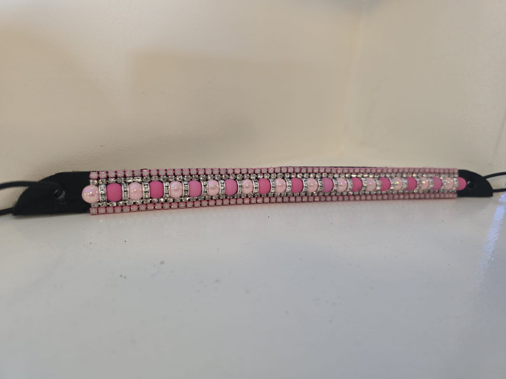 Bijpassend zadelsieraad bij de frontriem ‘First Class on Liv Airlines’. Dit betreft een lederen strip met gelijk design als de frontriem, te bevestigen aan de achterkant van het zadel met elastieken onder het zweetblad.