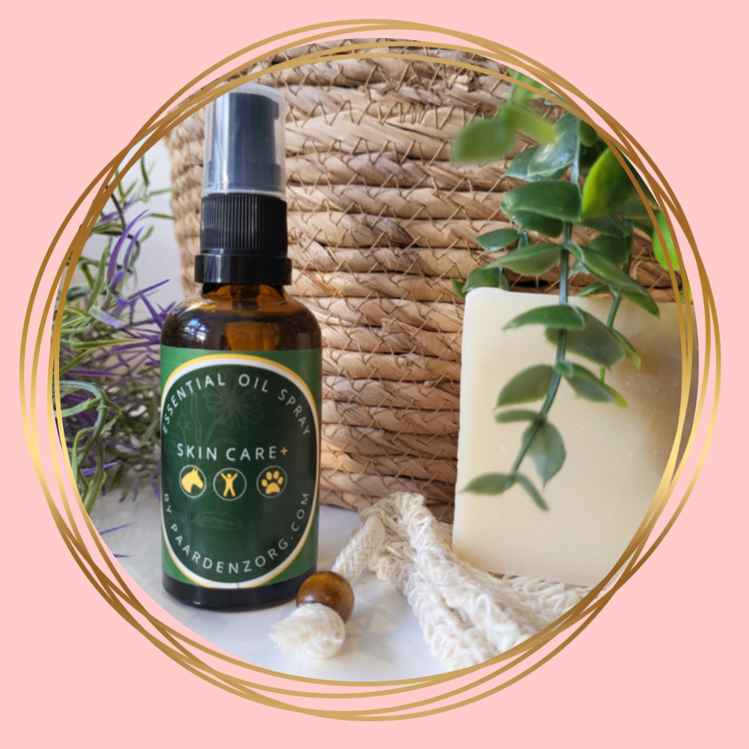 - 1x Skin Care+ (huid-wondspray): Deze krachtige natuurlijke oliespray is ideaal voor het verlichten van jeuk, schuurplekken, wondjes en andere huidproblemen. Het bevat ontstekingsremmende en herstellende ingrediënten zoals kamille, tea tree en calendula.