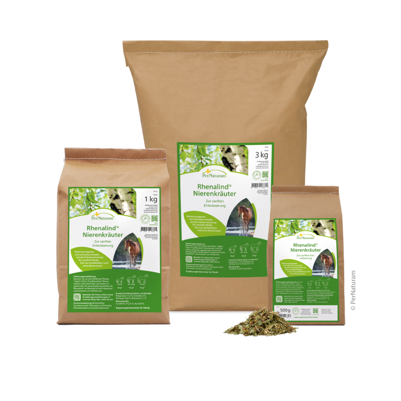 In tegenstelling tot veel andere nieren ondersteunende kruidenmengsels bevat Rhenalind géén kruiden met een irriterende werking, zoals brandnetel, jeneverbes of guldenroede. Hierdoor is het mild voor de nieren en wordt het goed geaccepteerd door paarden.