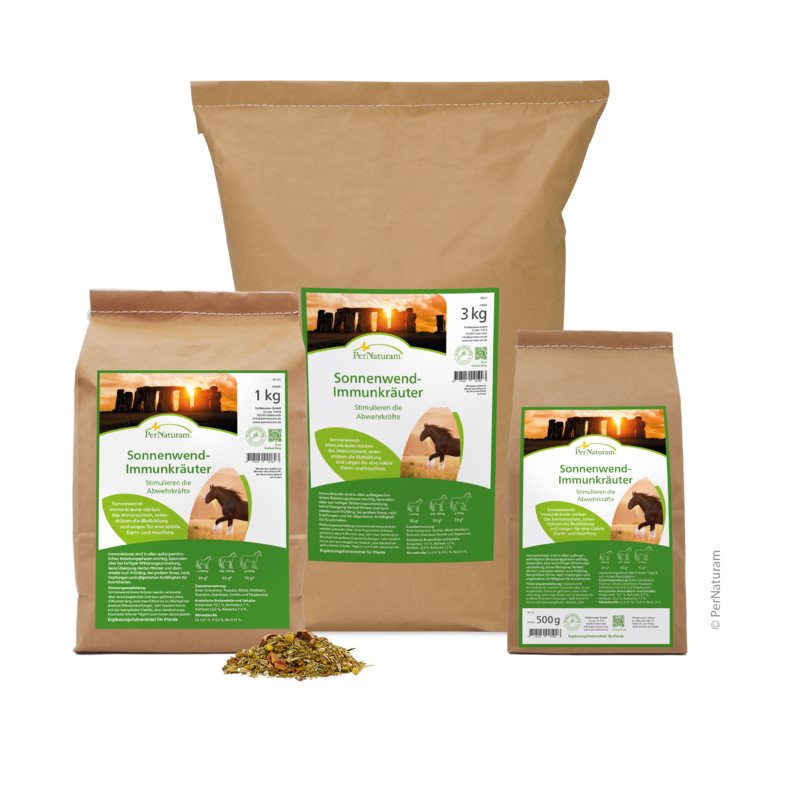 Een kuur met Sonnenwende Immuunkruiden heeft een positieve invloed op het immuunsysteem, vooral in het voor- en najaar wanneer paarden extra kwetsbaar zijn.