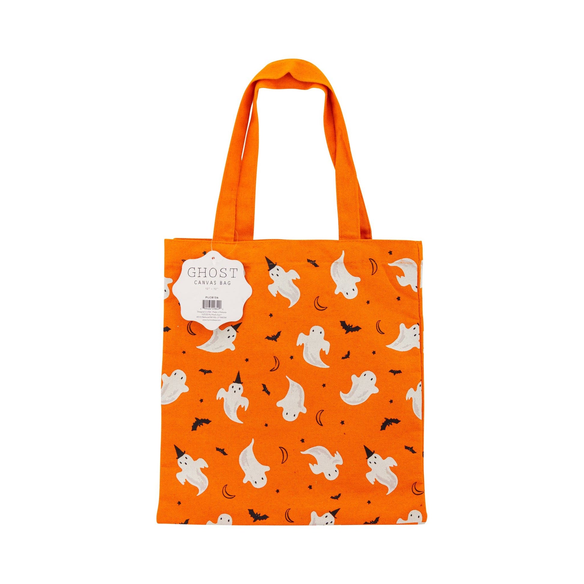 Get ready for Halloween fun with this vibrant 12x12 inch canvas bag featuring playful orange ghosts. Perfect for trick-or-treaters, it's spacious enough to hold plenty of candy and adds a festive touch to your celebrations. Durable and reusable, this bag makes collecting treats both easy and stylish.