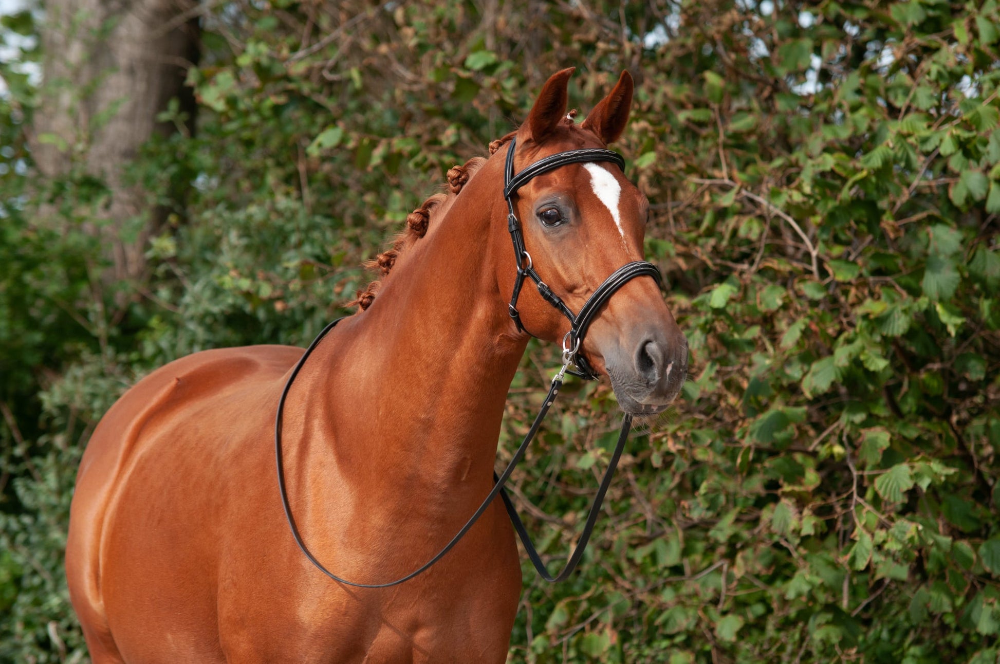 De Frio is ontworpen voor wie een ingetogen, klassieke stijl waardeert. De rechte neusriem en frontriem zijn voorzien van verfijnde sierstiksels die doen denken aan de Engelse rijkunst, waar eenvoud en elegantie centraal staan. De rechte neusriem is iets smaller van vorm – ideaal voor paarden die niet gebaat zijn bij een brede neusriem.