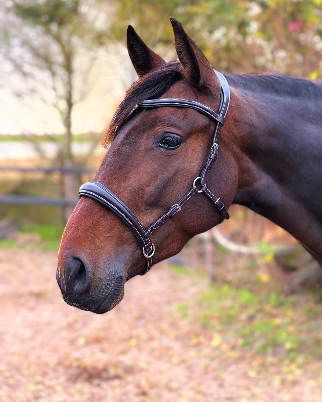 Net als alle hoofdstellen van LoveLance is ook de Zephyr gemaakt van premium Duits leder – soepel, zacht en duurzaam. Dit comfortabele leren hoofdstel voelt net zo goed aan als het eruitziet, en blijft jarenlang mooi bij goed onderhoud.