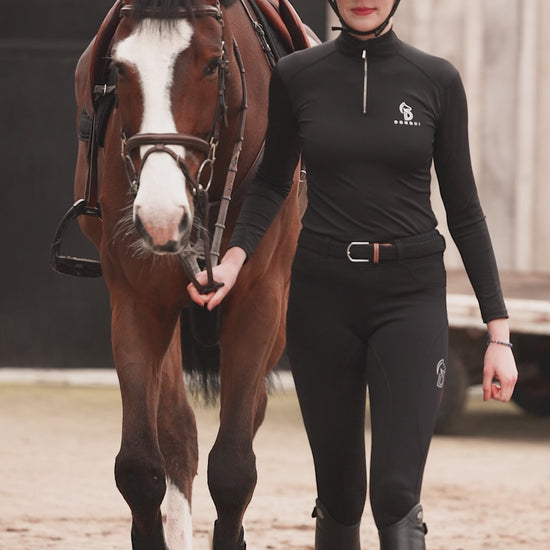 De Donqui full grip paardrijlegging met teddy voering voor dames biedt ultiem comfort en functionaliteit. Met een middel hoge taille voor een flatterende pasvorm en een handige telefoonzak. Het siliconen zitvlak zorgt voor optimale grip in het zadel, terwijl de stretchy stof zich aanpast aan jouw bewegingen. Perfect voor de koude winterdagen.