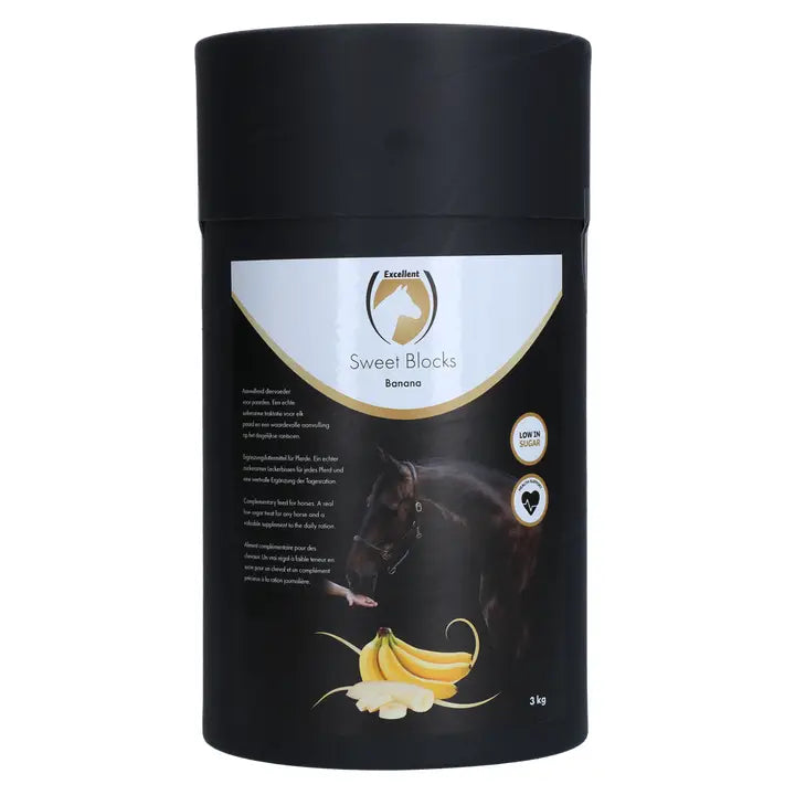 De Excellent Horse Sweet Blocks zijn een suikerarme en smakelijke traktatie voor paarden. Ze vormen de ideale, 'niet-dikmakende' beloning voor paarden en zijn tegelijkertijd een waardevolle aanvulling op het dagelijkse rantsoen en ondersteunen de algehele gezondheid van paarden. De Sweet Blocks zijn eenvoudig los mee te nemen in de tas of zak doordat ze niet kruimelen of plakken.
