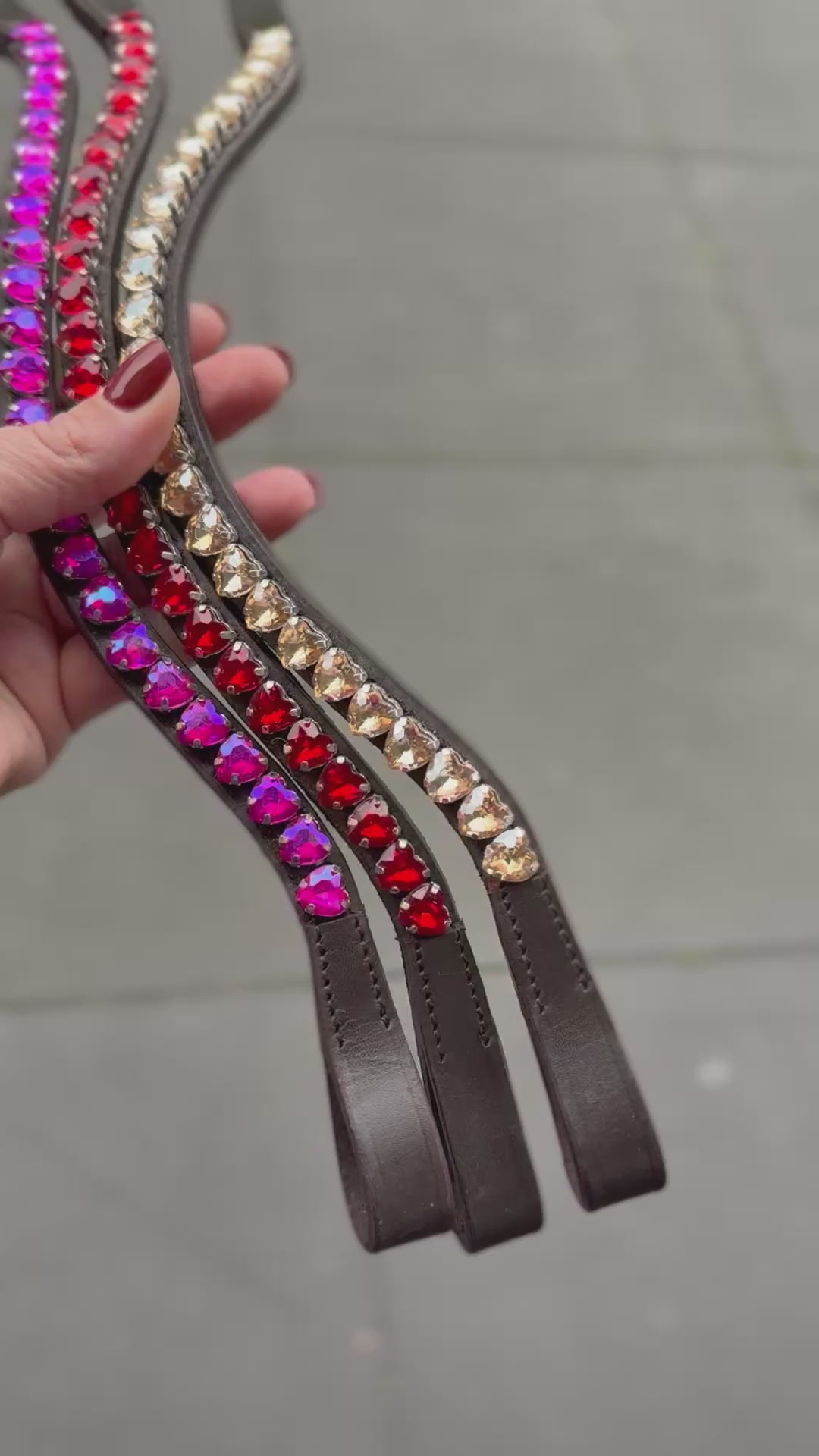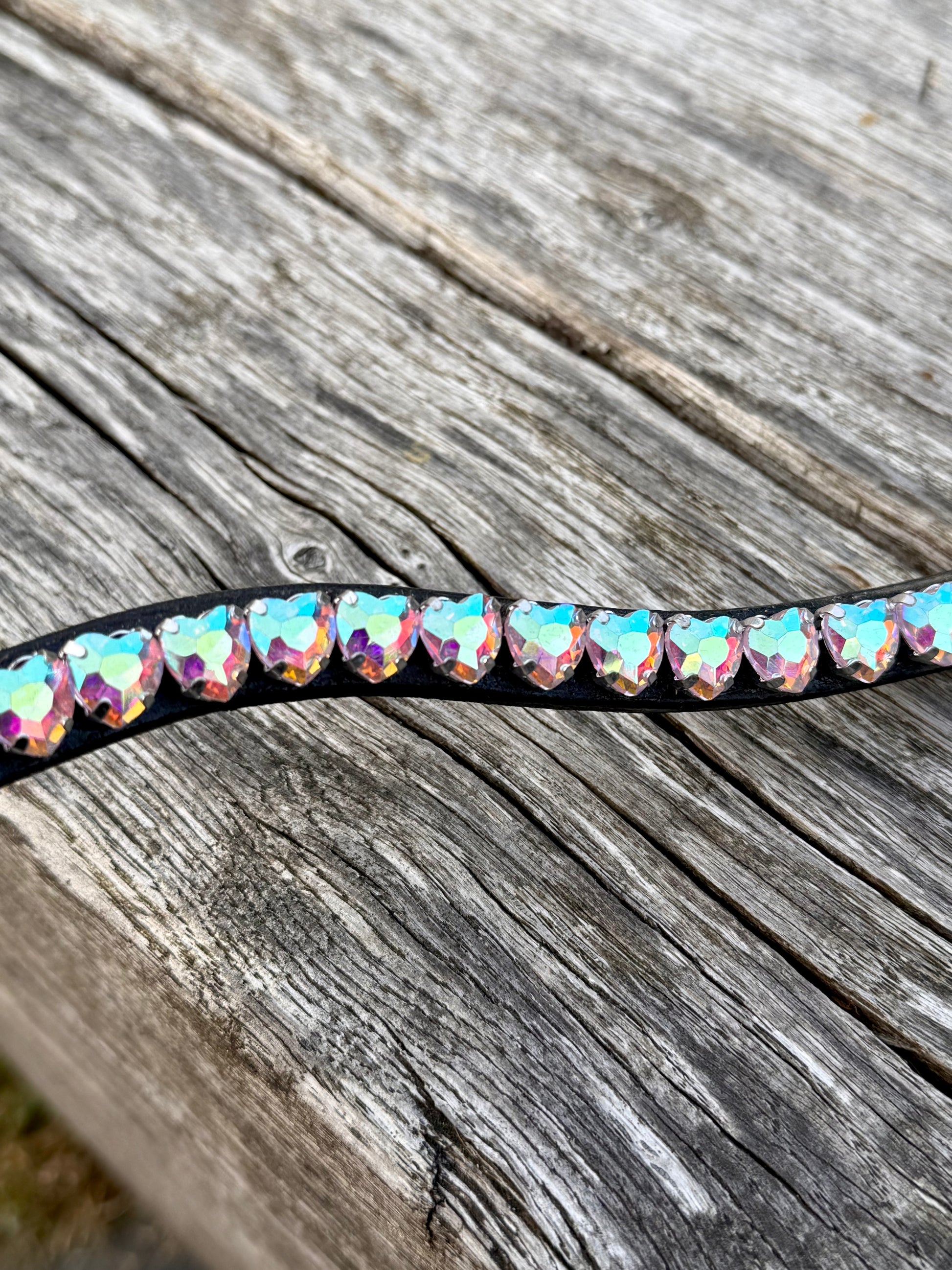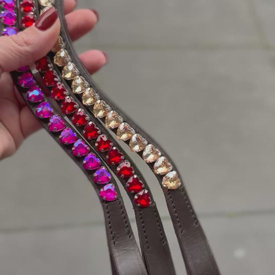 FMH - Sprankelende frontriem ‘Lovehearts’ Wave met 8mm steentjes in hartvorm (div. kleuren)