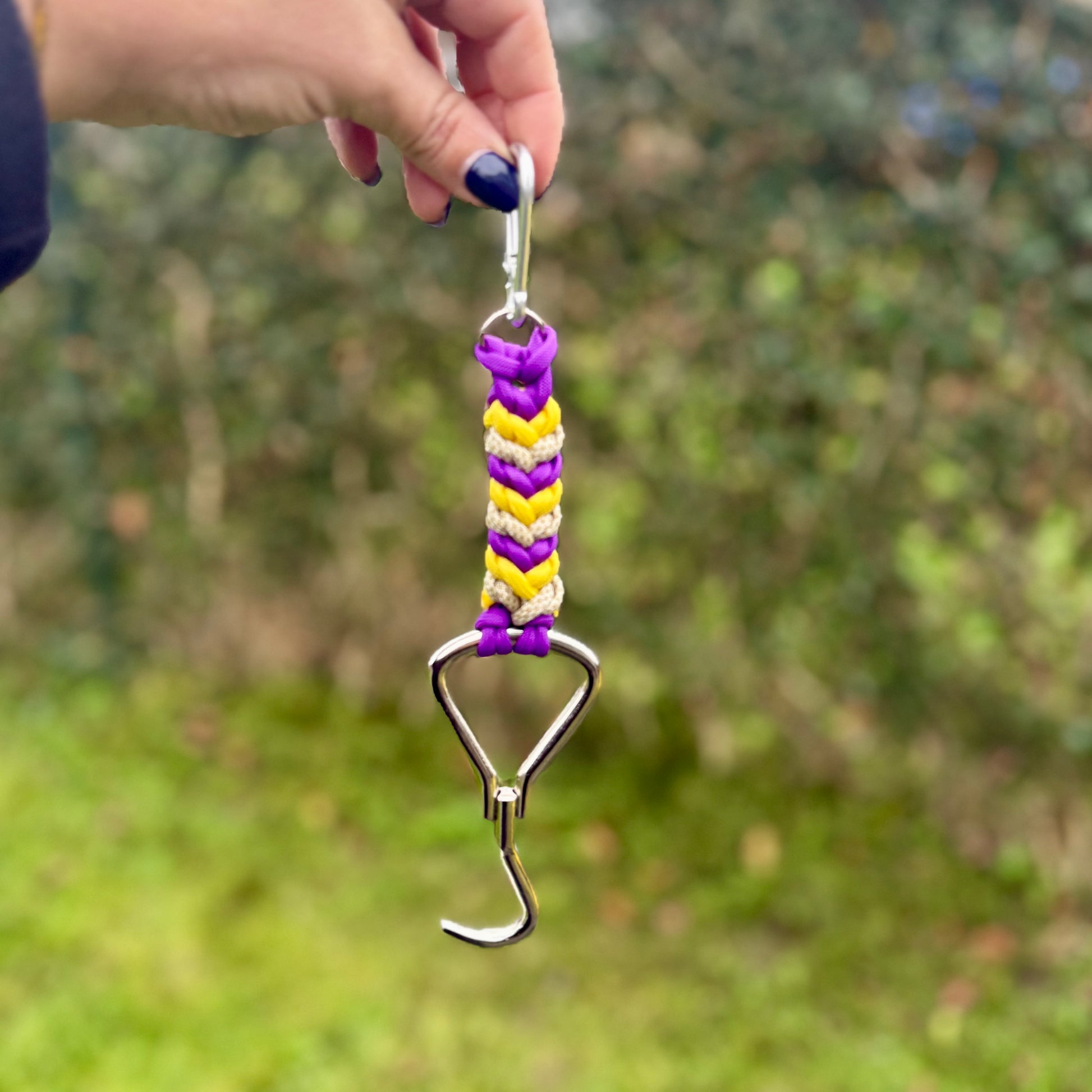 Handgemaakte Paardenhalsters - Inklapbare hoevenkrabber ‘Followmyhooves’ paars/geel