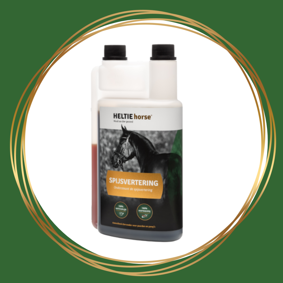 Heeft je paard soms last van z’n spijsvertering? HELTIE horse® Spijsvertering is hét natuurlijke supplement dat zorgt voor een gezonde darmflora, ondersteunt de nierfunctie en bevordert een optimale darmwerking. Je paard krijgt niet alleen een rustige buik, maar profiteert ook van een inwendige reiniging die bijdraagt aan een algehele goede gezondheid.