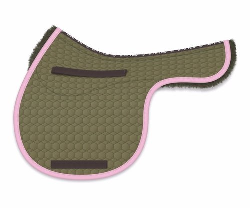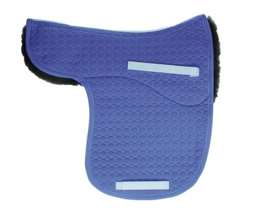 Zadelvormig katoenen dekje met lamsbont onder het zadelkussen.