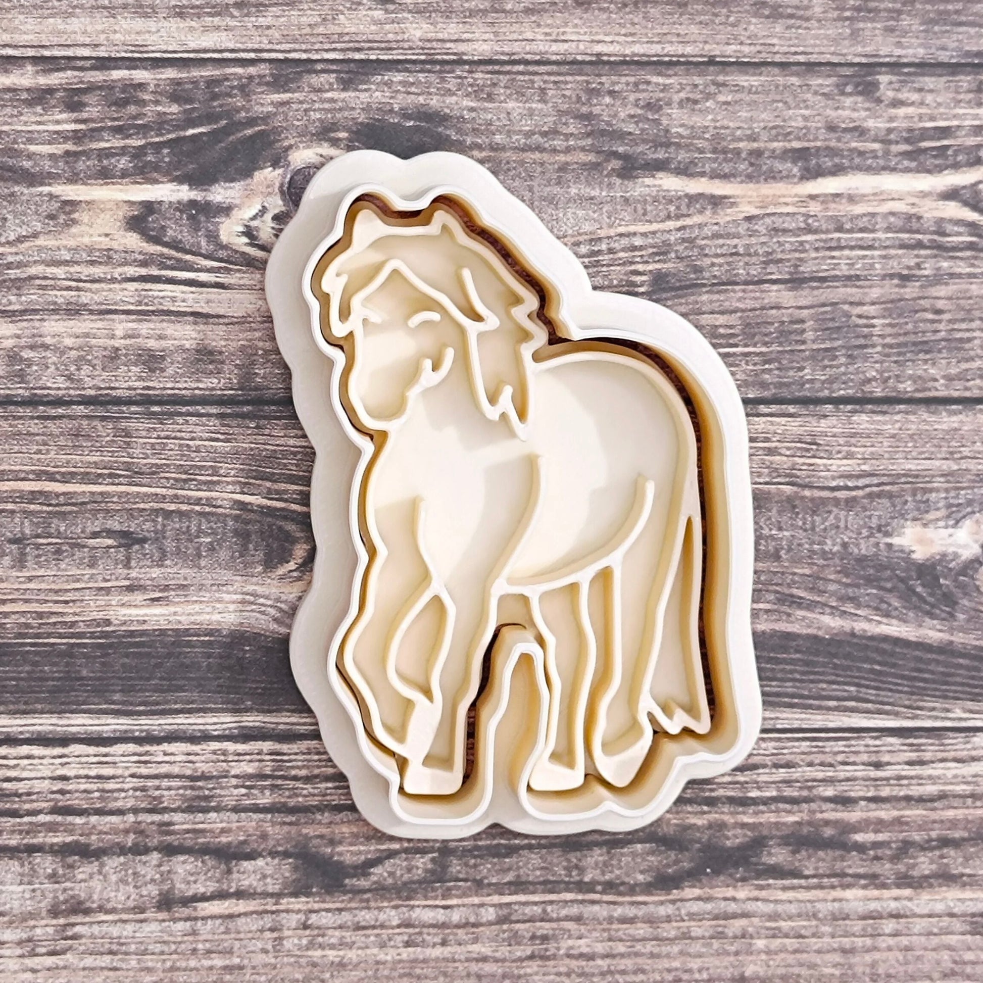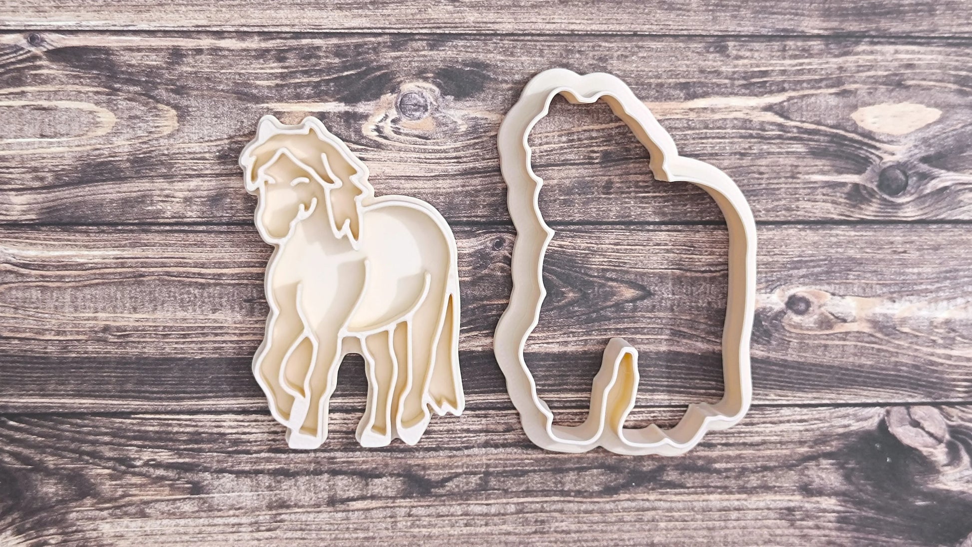 Maak de mooiste paardenvormige koekjes met deze unieke 3D-geprinte koekjesvormen! Elk setje bestaat uit twee onderdelen: een contoursteker om de vorm uit te snijden én een embosser die een prachtig reliëf in het deeg drukt. Perfect voor kleine én grote paardenfans!