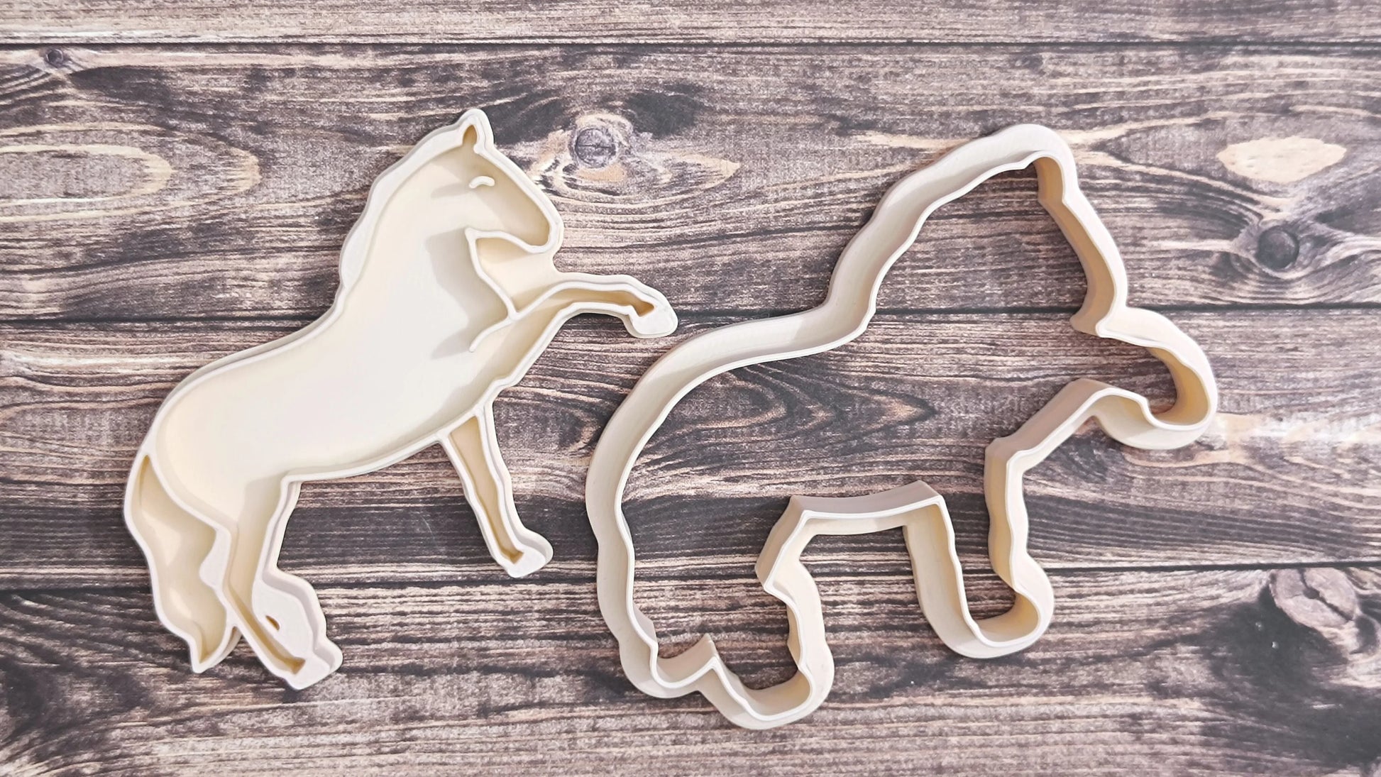 Maak de mooiste paardenvormige koekjes met deze unieke 3D-geprinte koekjesvormen! Elk setje bestaat uit twee onderdelen: een contoursteker om de vorm uit te snijden én een embosser die een prachtig reliëf in het deeg drukt. Perfect voor kleine én grote paardenfans!