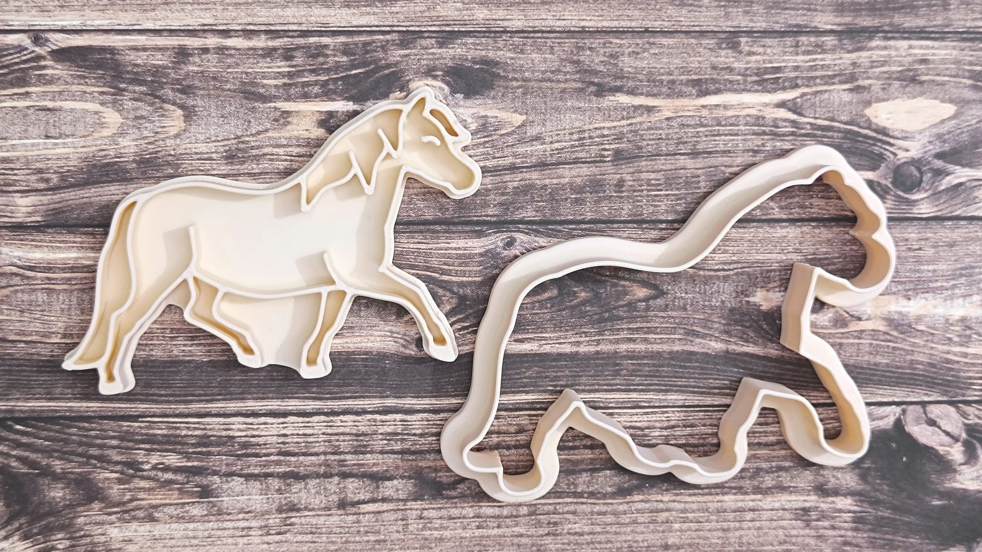 Maak de mooiste paardenvormige koekjes met deze unieke 3D-geprinte koekjesvormen! Elk setje bestaat uit twee onderdelen: een contoursteker om de vorm uit te snijden én een embosser die een prachtig reliëf in het deeg drukt. Perfect voor kleine én grote paardenfans!