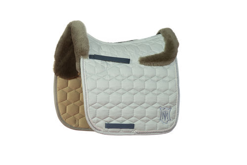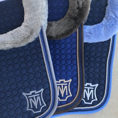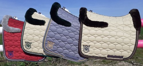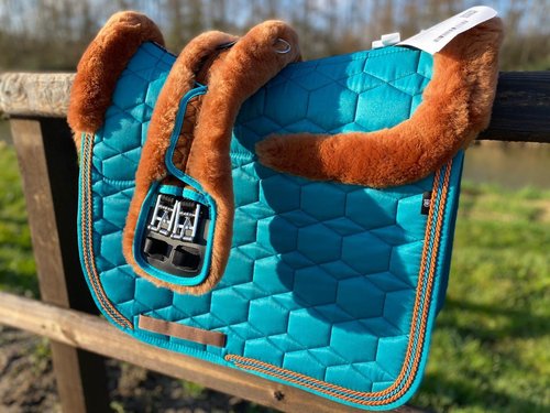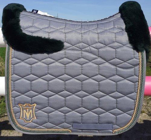 Vierkant dekje met wol onder de kussens en een sierrand aan de bovenkant.