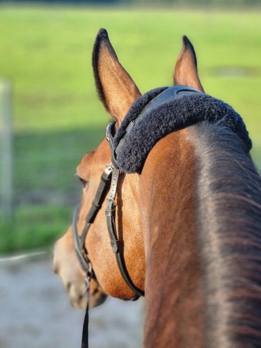 - Klittenband zit bovenop zodat het kopstuk niet naast het bontje glijd